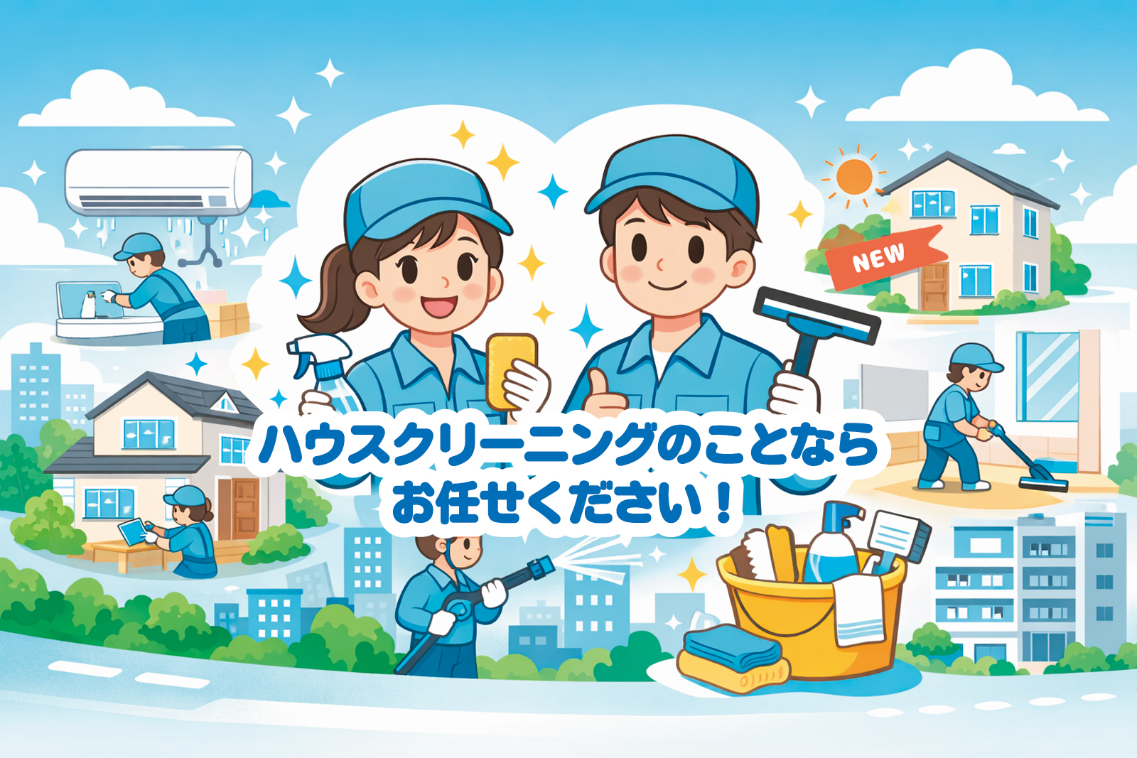 ハウスクリーニングをはじめ、エアコンの分解洗浄、新築クリーニング、マンション・アパートの定期管理、外壁洗浄まで幅広く対応しております。